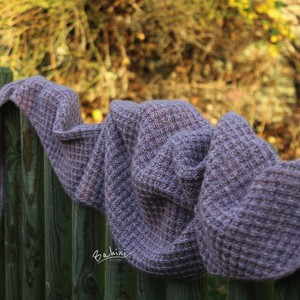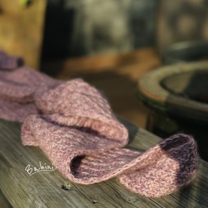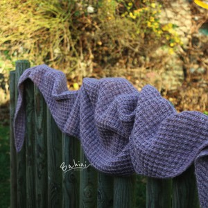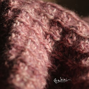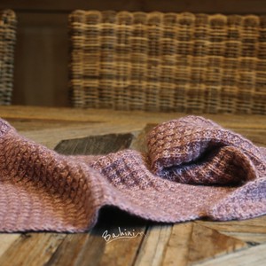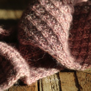 Je me suis un peu laissée aller, car ce châle est un châle de luxe. Il est tricoté avec un fil 68% Cashmere et 32% soie, une des laine les plus douces sur le marché. J'ai combiné un fil très fin en laine, dans un dégradé de roses et un fil 100% alpaca