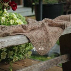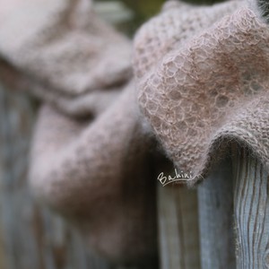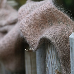 Hij is vervaardigd met een draad van 100% Cashmere van hoge kwaliteit, en een draad 77% Mohair met 23% zeide. Deze mini sjaal in driehoeksvorm is zo zacht, licht en lekker warm.