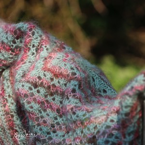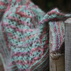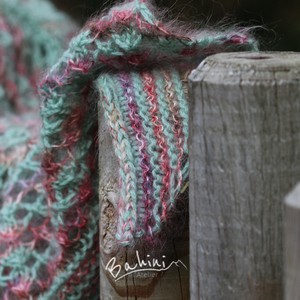 Hij is vervaardigd in twee verschillende kleuren, met een draad van 100% Cashmere van hoge kwaliteit, en Twee draden 77% Mohair met 23% zeide. Deze mini sjaal in driehoeksvorm is zo zacht, licht en lekker warm.